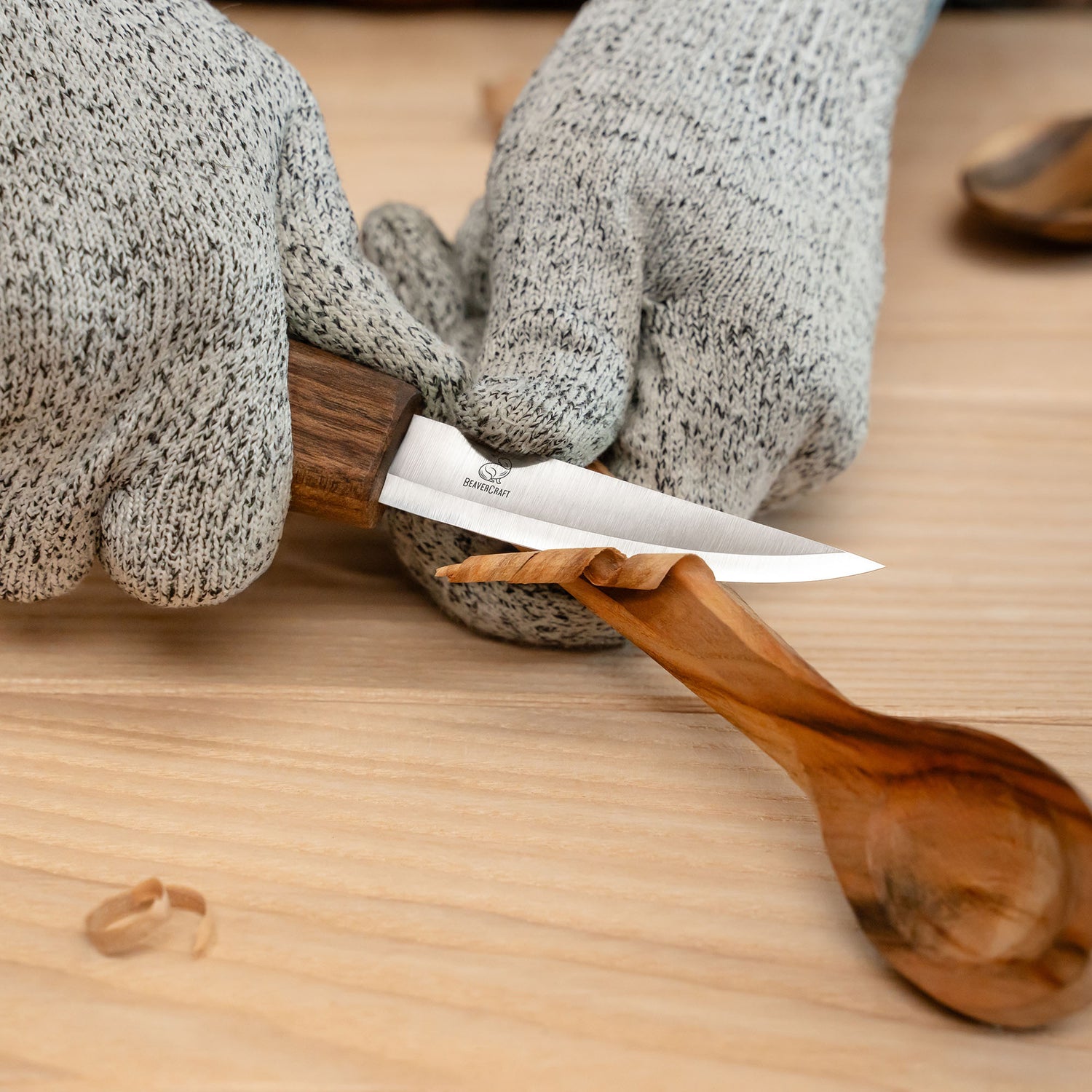 Carving is about precision, control, and creativity - and the S18X Deluxe Set delivers on all three fronts. Designed with the input of wood carving professionals, each knife is tuned for performance, with a Scandi grind that holds its edge and cuts clean through soft and hardwood alike. The included gouge and hook knife feature chisel grinds, giving you the leverage and curve control needed for bowls, spoons, and hollowed work.