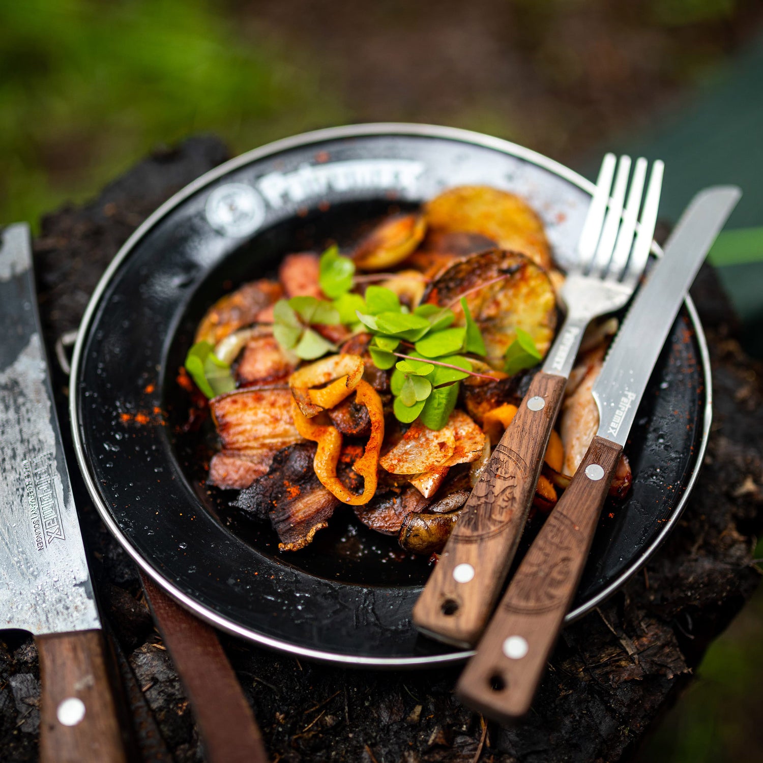 The Petromax Enamel Side Plates are a simple yet durable solution for outdoor dining. Each 18cm plate in this set of two is made from enamelled steel, giving it a tough finish that’s built for the outdoors. The stainless steel rim strengthens the plate while keeping the edges smooth and hygienic - no sharp bits, no fuss.