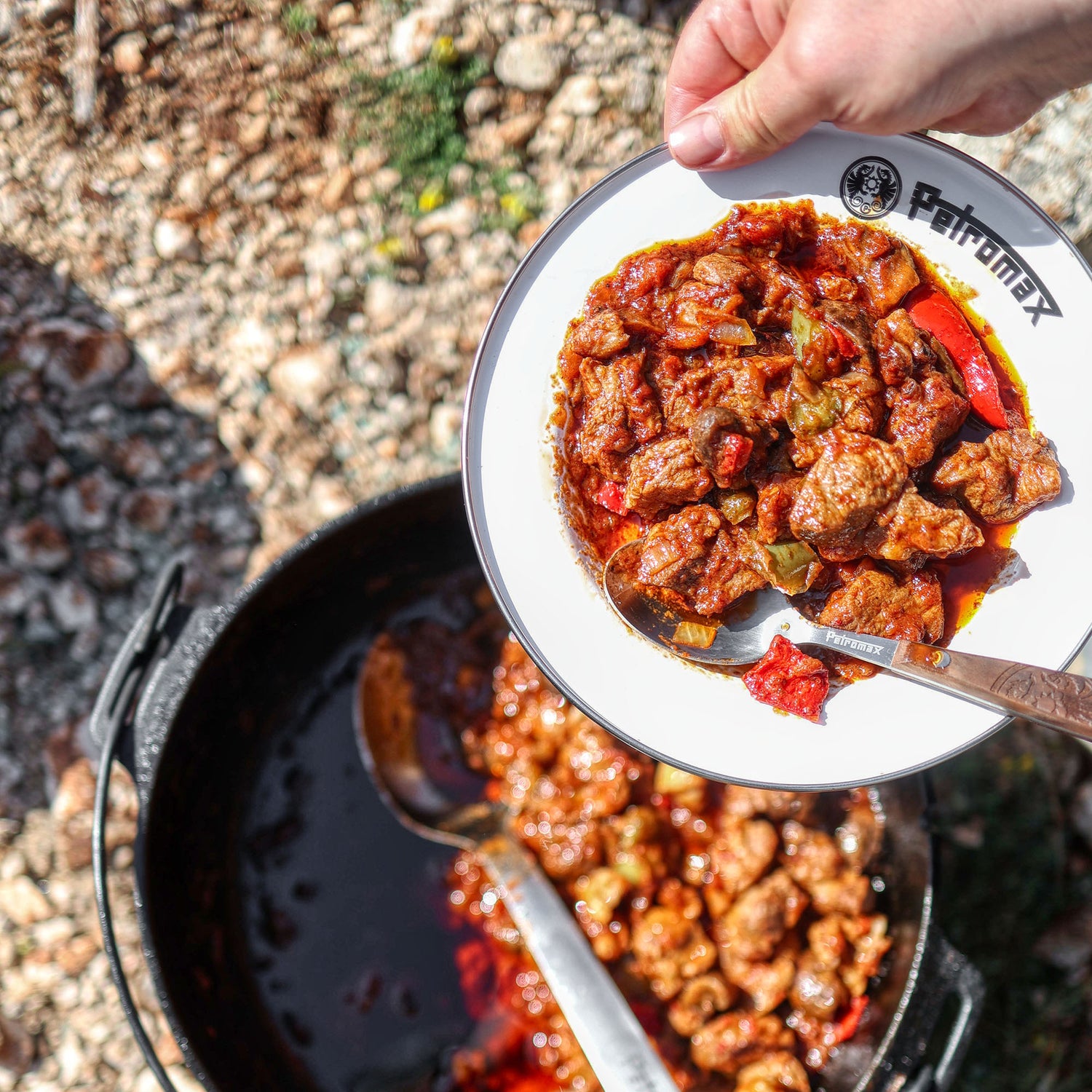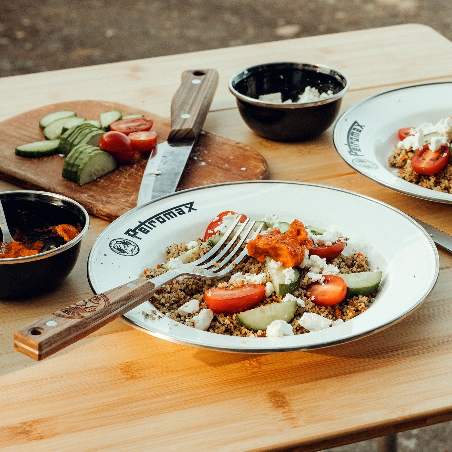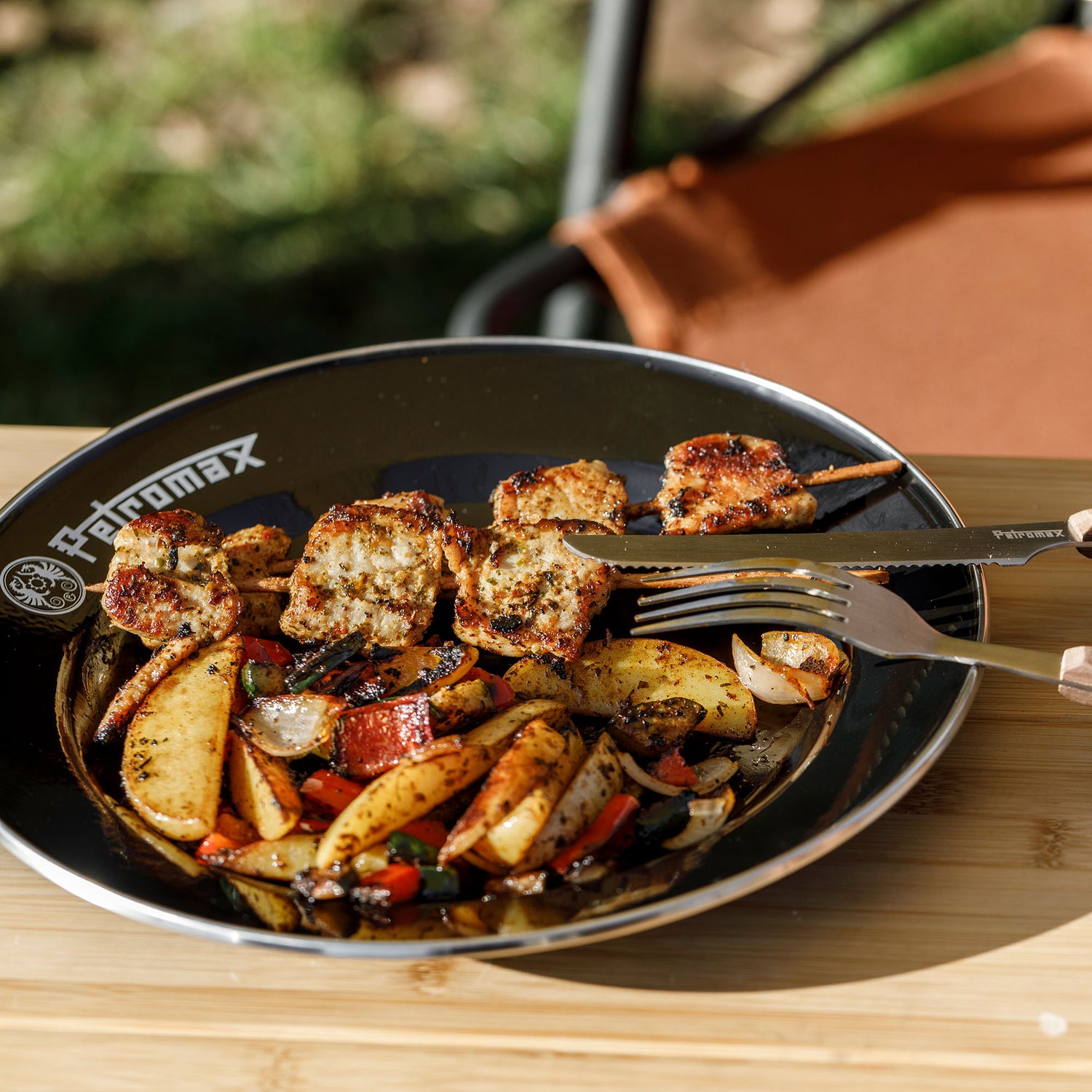 For those who don’t mess around at mealtime, the Petromax 26cm Enamel Dinner Plates offer plenty of space and unmatched durability. This set of two is crafted from enamelled steel that shrugs off scratches and heat, with a stainless steel rim that boosts strength while keeping things clean and safe.
