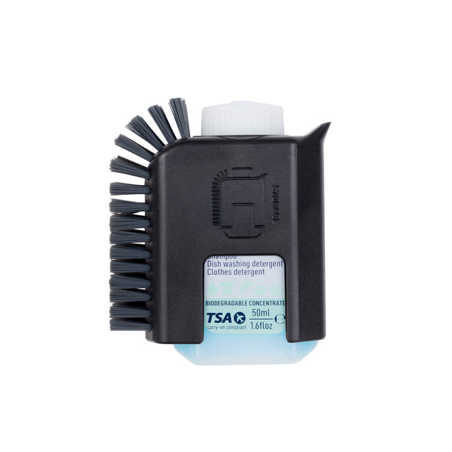 Easy to hold, easy to use, the Pot Scrubber includes a 50ml bottle of Wilderness Wash ready to take on baked-on food residue from camp cooking. Nylon bristles and the integrated scraper mean your pots and tableware will be really clean - not just camp clean.