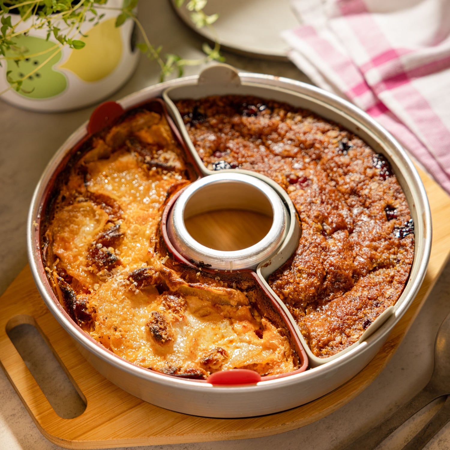 Love variety? The Omnia Classic Silicone Mould Set is made for you. A modular set of six silicone moulds, with two halves and four quarters, these flexible, food-safe moulds let you bake or reheat multiple dishes simultaneously without mixing flavours. Warm up dips, cook tapas, or serve individual portions with ease - all in one session. Perfect for small plates, creative meals or when you're cooking for people with different needs.
