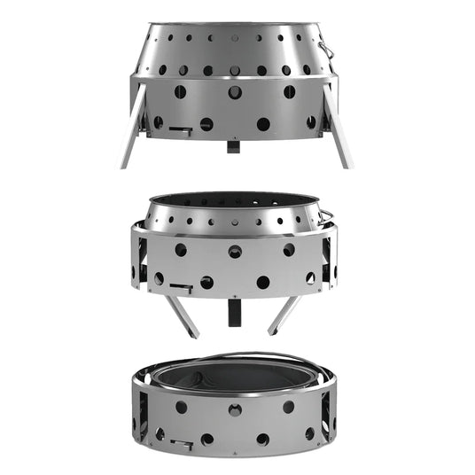- Grill with wood, charcoal or briquettes using the included grill grate.
