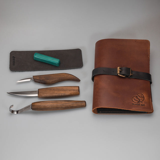 BeaverCraft 5 Piece Spoon Carving Set in Leather Case
