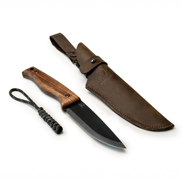 Rugged, refined, and built for the outdoors, the BeaverCraft Nightfall BSH3 is a premium bushcraft and survival knife that blends performance with craftsmanship. Featuring a blued carbon steel blade, this knife maintains a razor-sharp edge while resisting rust and corrosion. The full-tang construction ensures unyielding strength, while the carefully contoured European walnut handle offers exceptional comfort and control. Blued steel is named after the film of oxides used to coat the steel, where it becomes blue-black in colour, resisting corrosion and allowing the knife to be used in rainy and damp environments.